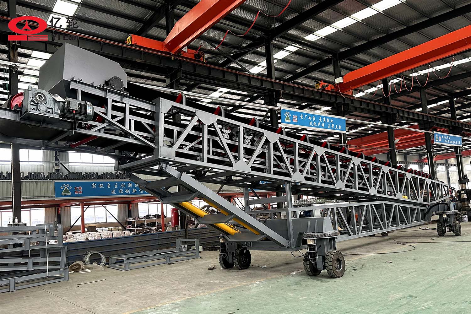 大型智能四驅(qū)輪胎式輸送機(jī),采用伸縮輸送臂和液壓升降架,能夠便捷的調(diào)節(jié)堆料的半徑和高度,場(chǎng)地內(nèi)任意方向行走,料場(chǎng)能最大限度的堆滿,具備強(qiáng)大的物料倉(cāng)儲(chǔ)管理的能力。